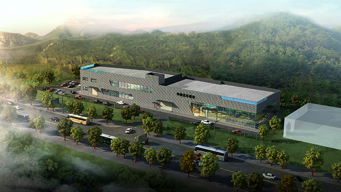 本項目將汽車綜合展廳居中布置,將停車場布置在項目西側,并借用停車場地形成消防回路。