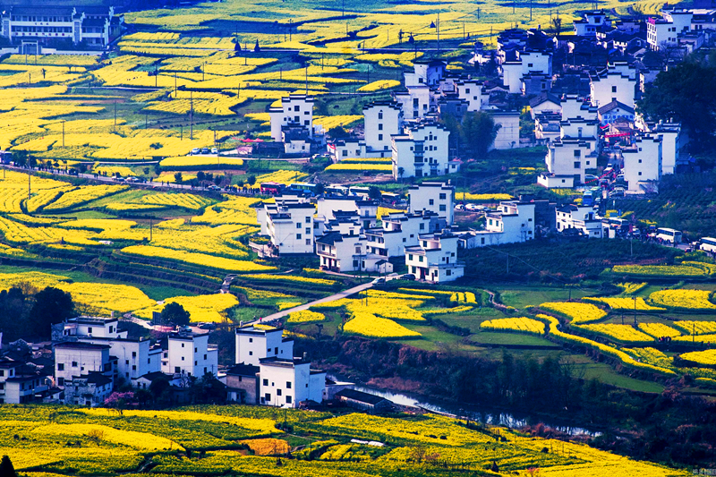 該縣要求全縣每一幢房子、每一座橋梁、每一條道路、每一片綠化,甚至每一扇門窗、每一處欄桿都按景觀物的要求來建設(shè)或制作,全面地融入地域的特色,形成“處處風(fēng)光步步景”鄉(xiāng)村旅游發(fā)展格局。同時,注重風(fēng)格的統(tǒng)一協(xié)調(diào),景區(qū)內(nèi)的景點(diǎn)建筑、村民建筑、單位建設(shè)都緊扣旅游主題,彰顯地方特色,新建房屋基本上采用新徽派風(fēng)格,縣內(nèi)主要公路沿線、景區(qū)景點(diǎn)可視范圍,油菜種植覆蓋率達(dá)90%以上,形成了“油菜花經(jīng)濟(jì)”,三條精品旅游線路沿線茶園每年套種梨樹、桃樹等帶花苗木15萬余株,形成“花開百村景象”,使婺源鄉(xiāng)村旅游有看頭、看不完。
