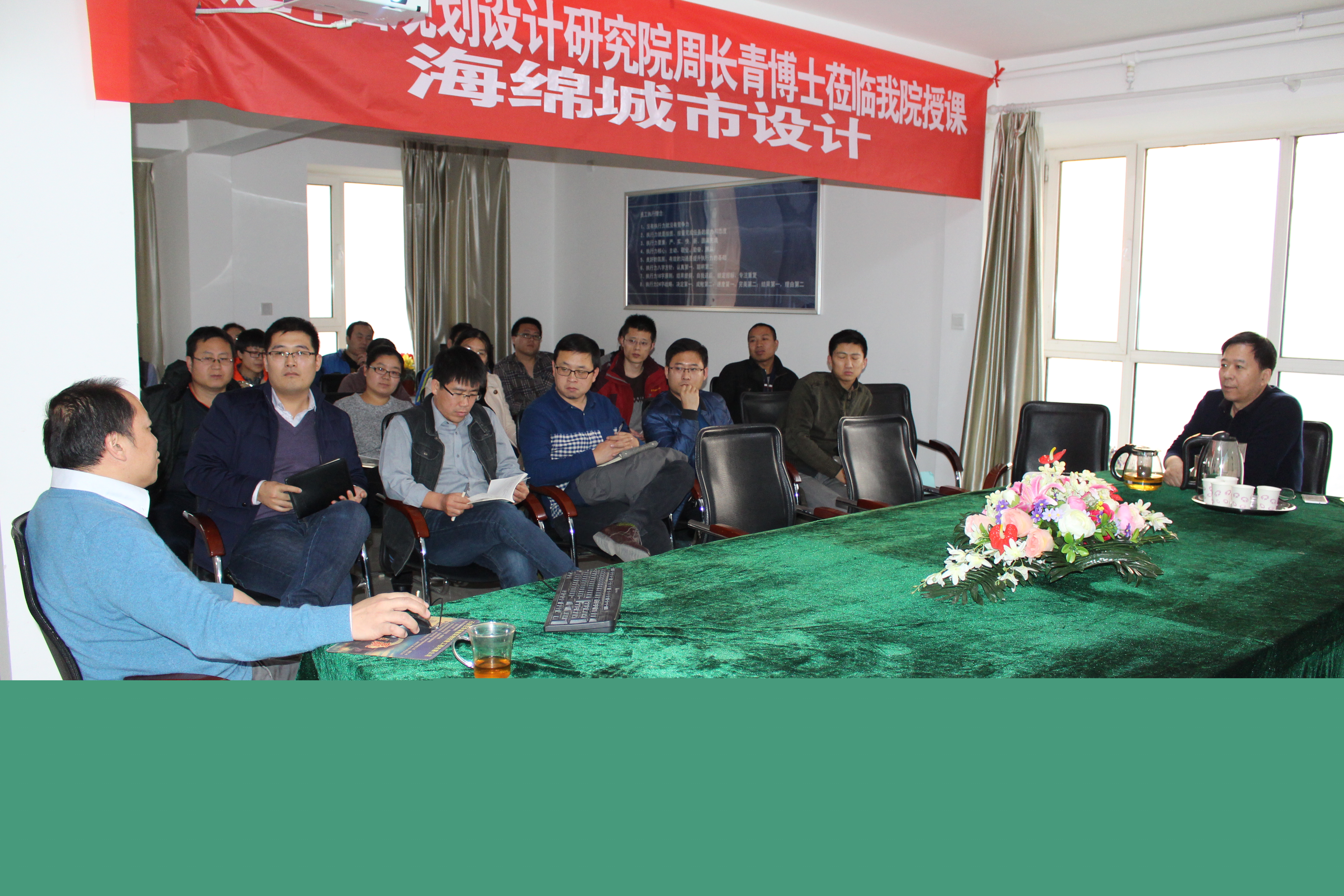 為積極響應(yīng)政府號(hào)召,大力推廣海綿城市建設(shè),提升公司規(guī)劃設(shè)計(jì)人員的創(chuàng)新意識(shí),我公司于2016年11月27日,邀請(qǐng)中國(guó)城市規(guī)劃設(shè)計(jì)研究院周長(zhǎng)青博士蒞臨我院授課,綜合設(shè)計(jì)處、規(guī)劃所及綠化設(shè)計(jì)所人員參加了此次培訓(xùn)。