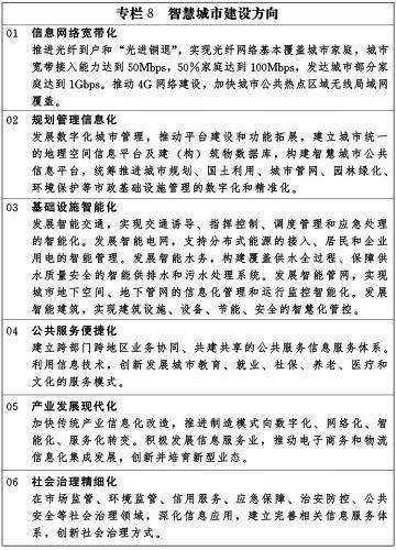 統(tǒng)籌城市發(fā)展的物質(zhì)資源、信息資源和智力資源利用,推動物聯(lián)網(wǎng)、云計算、大數(shù)據(jù)等新一代信息技術(shù)創(chuàng)新應(yīng)用,實現(xiàn)與城市經(jīng)濟社會發(fā)展深度融合。強化信息網(wǎng)絡(luò)、數(shù)據(jù)中心等信息基礎(chǔ)設(shè)施建設(shè)。促進(jìn)跨部門、跨行業(yè)、跨地區(qū)的政務(wù)信息共享和業(yè)務(wù)協(xié)同,強化信息資源社會化開發(fā)利用,推廣智慧化信息應(yīng)用和新型信息服務(wù),促進(jìn)城市規(guī)劃管理信息化、基礎(chǔ)設(shè)施智能化、公共服務(wù)便捷化、產(chǎn)業(yè)發(fā)展現(xiàn)代化、社會治理精細(xì)化。增強城市要害信息系統(tǒng)和關(guān)鍵信息資源的安全保障能力。