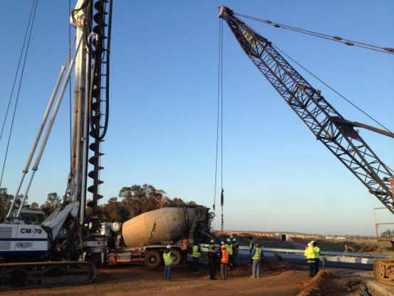 (2)坍落度過大或過小,檢測混凝土坍落度是否滿足要求,坍落度過大了,容易產(chǎn)生泌水、離析現(xiàn)象,在短時(shí)間內(nèi)出現(xiàn)粗骨料下沉,水泥漿浮在上面。使鋼筋籠下行阻力增大,導(dǎo)致鋼籠不能到位;坍落度過小,仍然會增加下籠難度,因此在施工過程中必須將坍落度嚴(yán)格控制在18~22cm;
