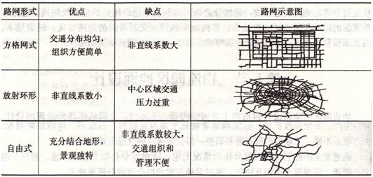 物流園區(qū)的路網(wǎng)結(jié)構(gòu)是指園區(qū)道路形成的骨架形式(幾何圖形)。園區(qū)道路網(wǎng)結(jié)構(gòu)可以建設(shè)為方格形、放射環(huán)形、自由式3種類型,具體特點和使用條件如表所示。