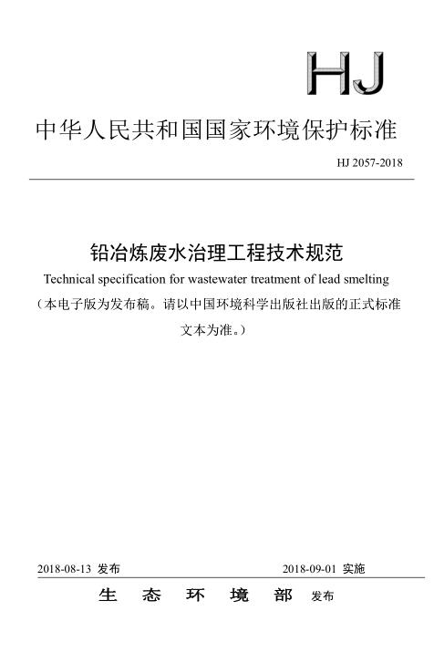 近日,國家環(huán)境保護(hù)標(biāo)準(zhǔn)《鉛冶煉廢水治理工程技術(shù)規(guī)范》發(fā)布, 9月1日實施,詳情如下:
