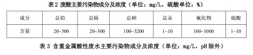 含重金屬酸性廢水主要產(chǎn)生于制酸凈化工段電除霧沖洗、沖渣、濕法收塵、濕法車間、地面沖洗、實驗室、有害渣庫滲濾等,主要污染物有重金屬離子、酸、懸浮物等。