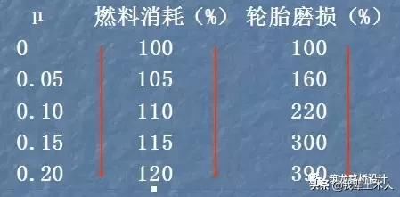 μ的舒適界限,由0.10到0.16隨行車速度而變化,設計中對高、低速路可取不同的數值。