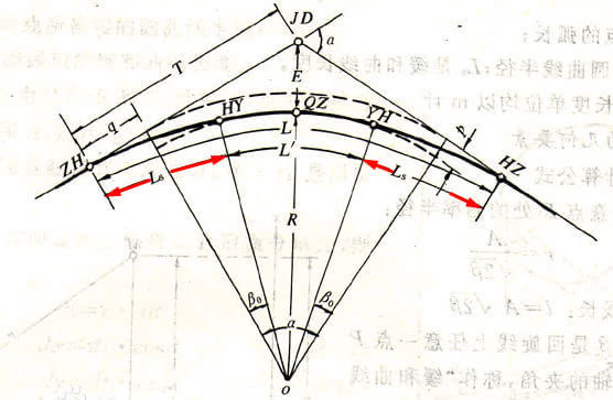 一般由直線、緩和曲線、圓曲線構(gòu)成。什么叫緩和曲線呢?是一個(gè)曲率連續(xù)變化的曲線,此例中是連接直線與圓曲線之間的過渡曲線。這樣就能逐漸入彎和出彎道啦。【Ls段就是緩和曲線段】