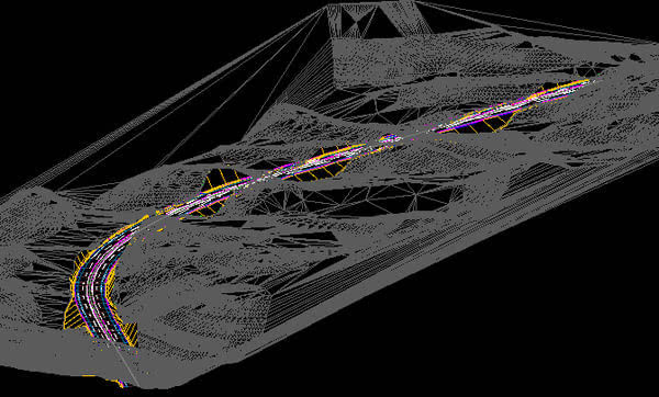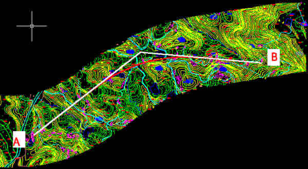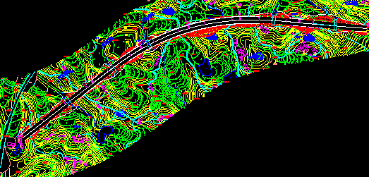 平面縱面都確定了,那么道路中線的空間位置就確定了。那么把左右50m左右的高程都讀出來。那么一條路就基本呈現(xiàn)出來。