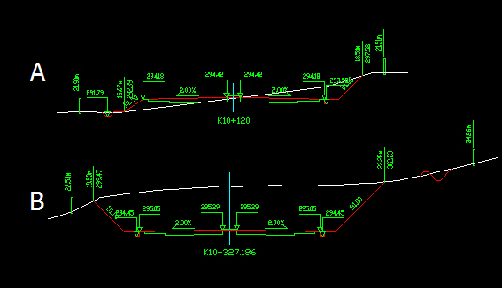 B截面就全是挖方段,要把土挖走運(yùn)到別的地方。