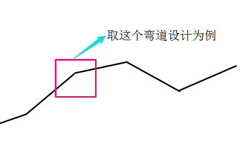 白線是大致走向,然后進(jìn)行平曲線設(shè)計(jì)(就是具體定下這個(gè)彎怎么過,比如我們經(jīng)過計(jì)算定出了紅線)一般的路是拐來拐去的,比如: