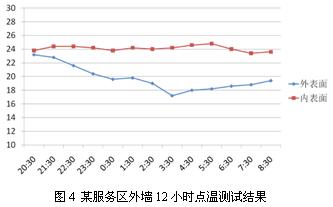 5、服務區建筑設計技術層面存在的問題,就是基本上未考慮“四節一環保”的要求,因此根本上達不到國家《公共建筑節能設計標準》規定節能50%的要求,這從我們在實地調研中對幾個服務區綜合樓的熱工測試結果(如圖4所示)可以看得出來。