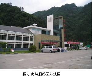 受占地空間的限制,服務區內會最大程度地增加建筑面積和停車場面積,如服務區規劃設計充分利用原地貌、地物資源,結合周邊地理環境進行設計,這實際上將是對自然環境的開發和保護,如圖6所示西漢高速公路的秦嶺服務區即為一例。