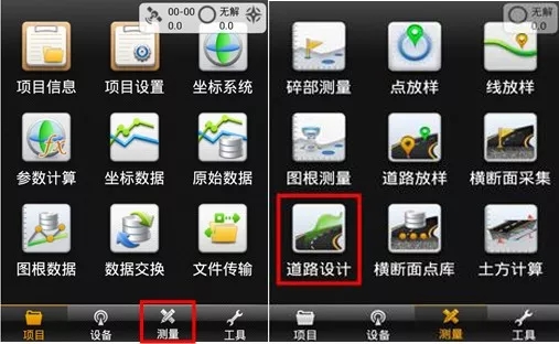 首先打開(kāi)中海達(dá)RTK手簿測(cè)量軟件Hi-Survey,【測(cè)量】-【道路設(shè)計(jì)】