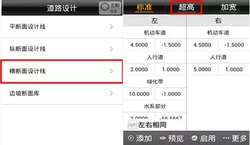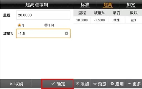 依次輸入四組超高點(diǎn)數(shù)據(jù),在預(yù)覽界面可以對(duì)應(yīng)查看