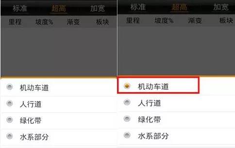 超高設(shè)在 左側(cè)機(jī)動(dòng)車 板塊 錄入如下: