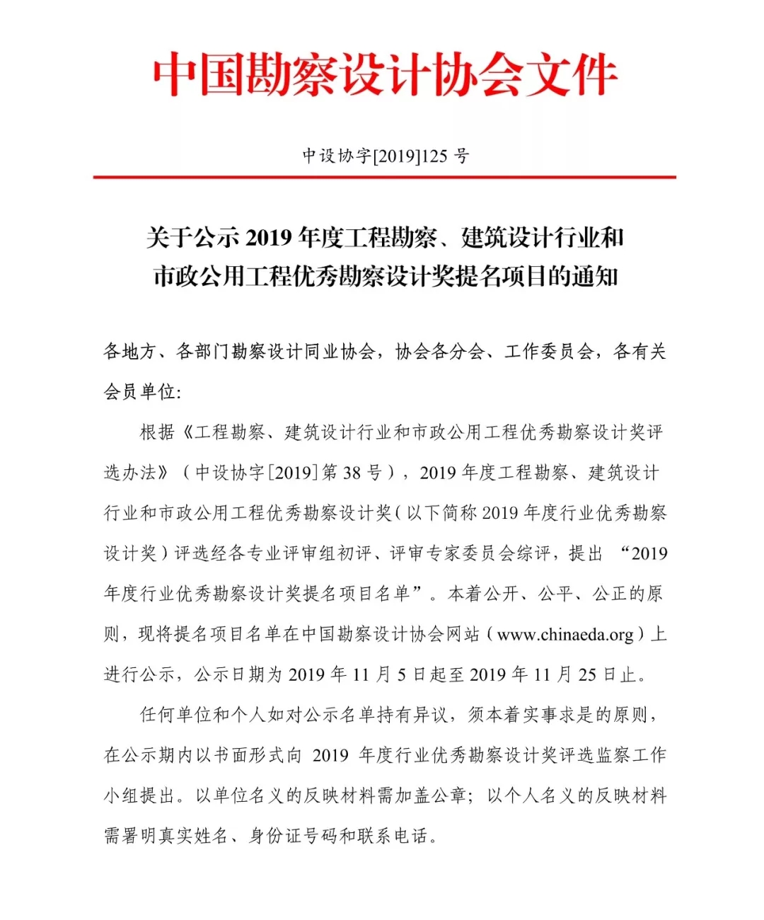 2019年度行業(yè)優(yōu)秀勘察設(shè)計(jì)獎提名項(xiàng)目公布!