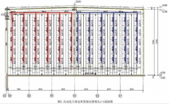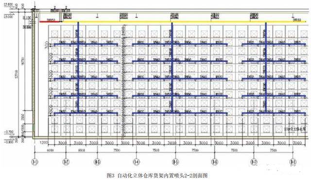 1、自動(dòng)化立體倉(cāng)庫(kù)由于最大儲(chǔ)物高度超過(guò)13.5m,頂板下噴頭無(wú)法滿足滅火要求,需要頂板下噴頭和貨架內(nèi)噴頭結(jié)合布置,達(dá)到滅火作用,頂板下噴頭采用的噴頭特性系數(shù)需要通過(guò)計(jì)算確定,需滿足噴頭噴水強(qiáng)度要求。