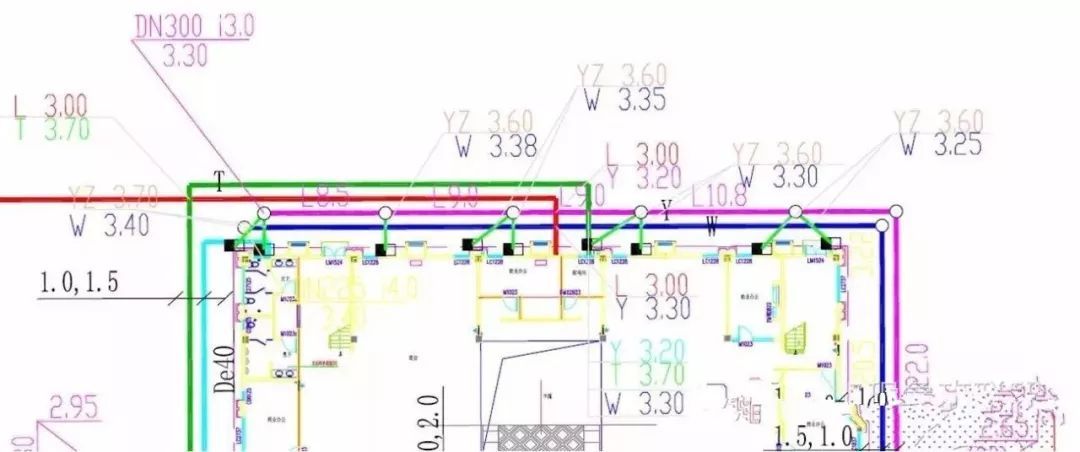 3、管道交叉時(shí)應(yīng)標(biāo)注下層管道的頂標(biāo)高和上層管道的底標(biāo)高,確定管道交叉是否沖突