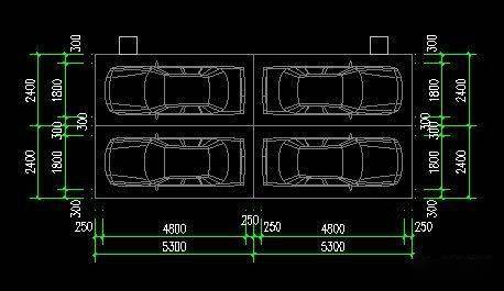 如按我國小型車和中型車的車型,當地下停車場柱距間停放1臺、2臺和3臺汽車時所需的最小柱距為(3.0 m、3.9 m)、(5.3 m、7.0 m)、(7.6 m、8.5 )