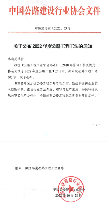 據悉,該評定由中國交通部委托中國公路建設協會組織開展評審,此次共審定了703項公路工程工法。