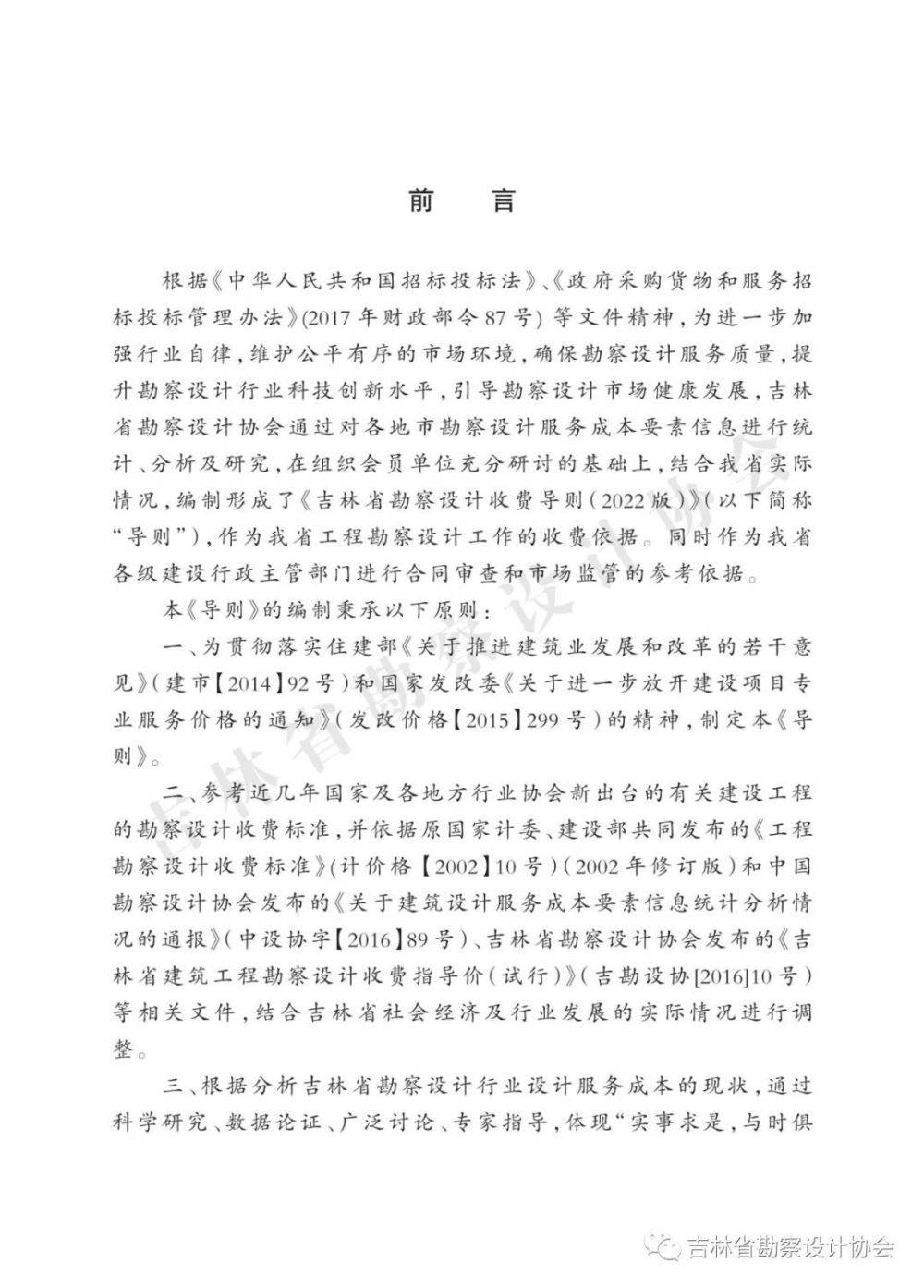 關于印發《吉林省工程勘察設計收費導則(2022版)》的通知