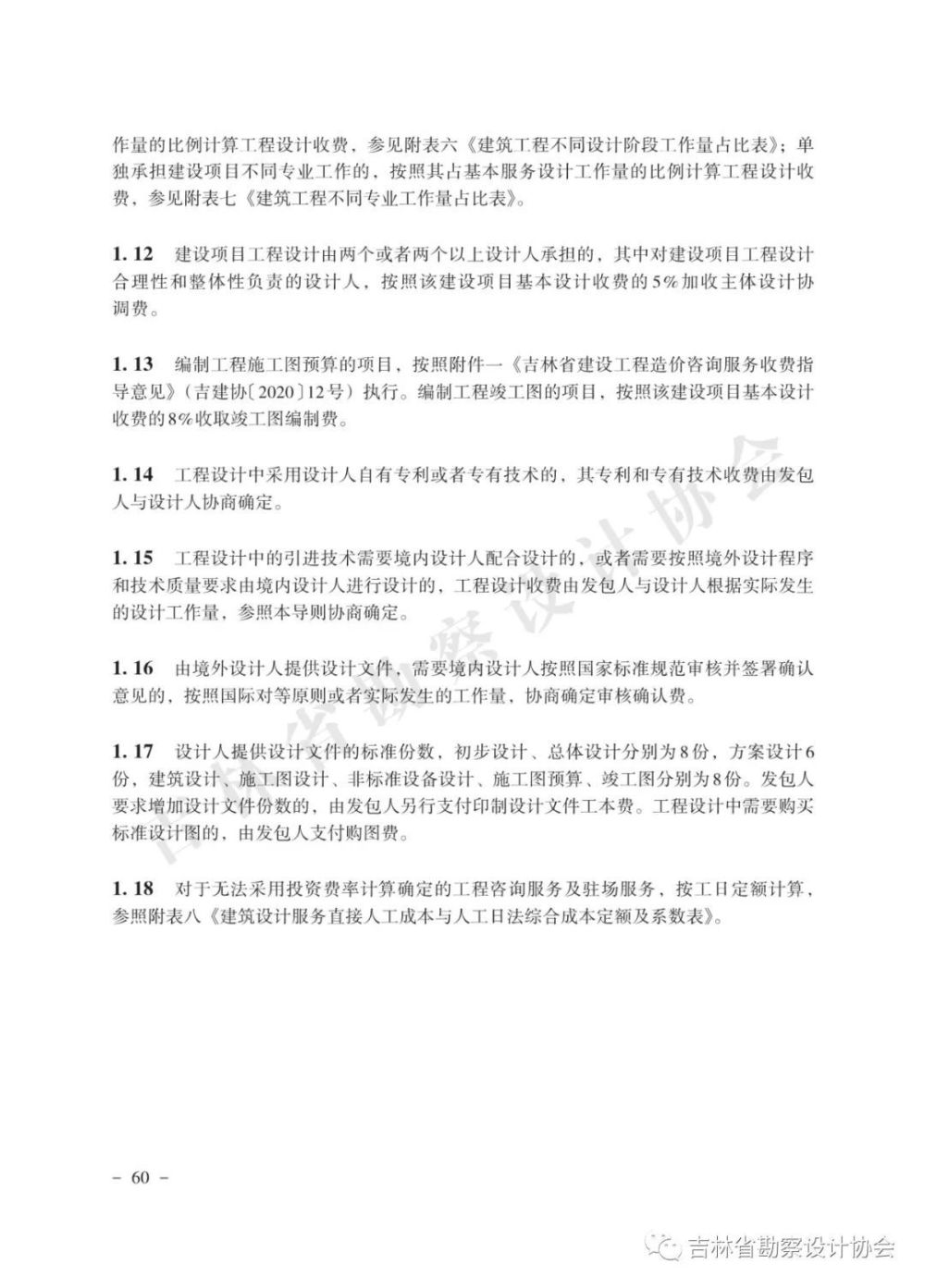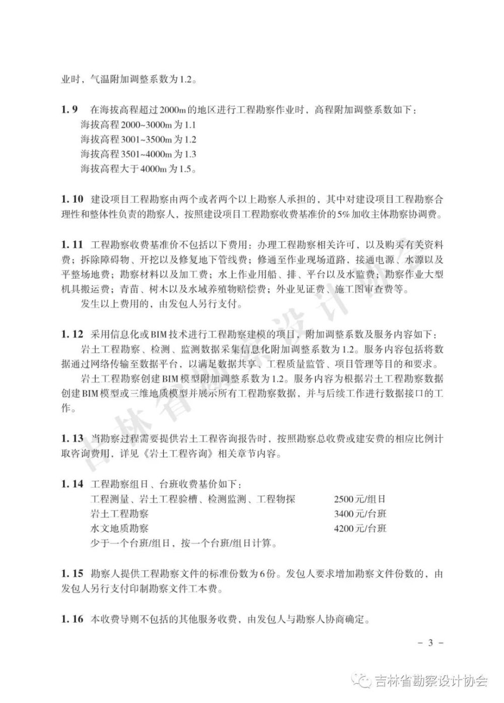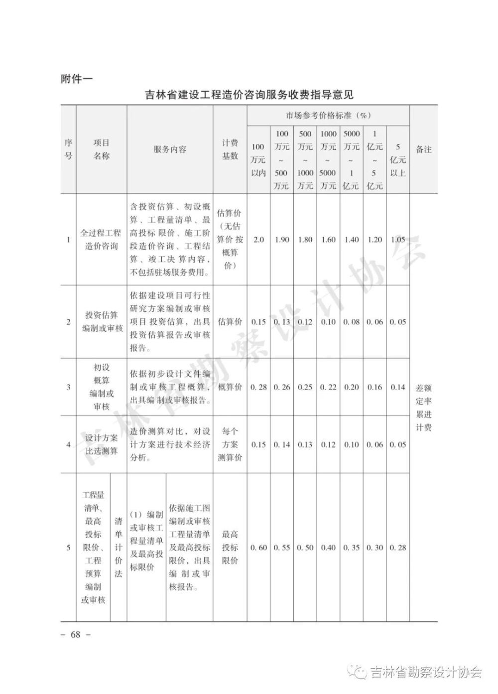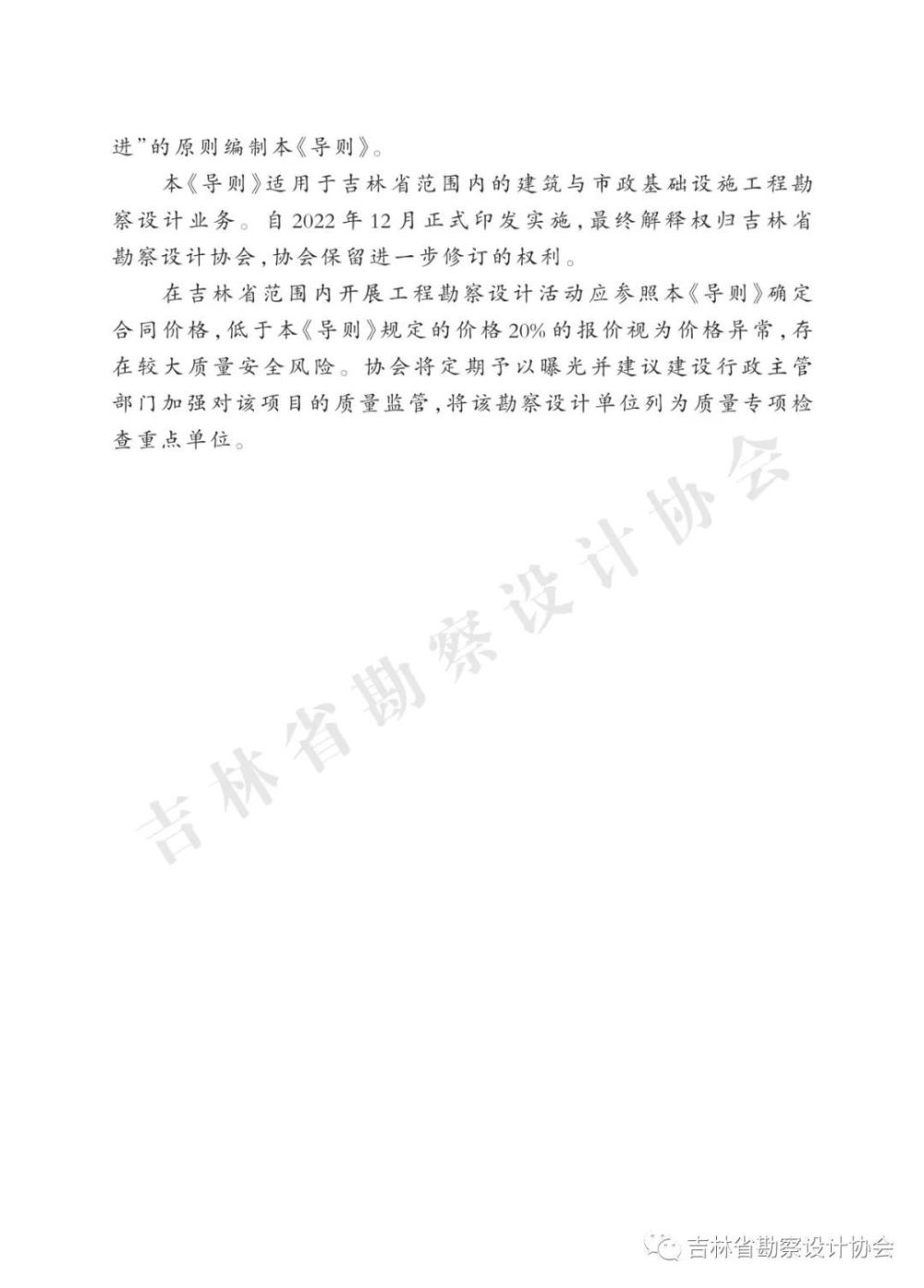 吉林省勘察設計協會通過對各地市勘察設計服務成本要素信息進行統計、分析及研究,在組織會員單位充分研討的基礎上,結合該省市級情況,對《吉林省建筑工程勘察設計收費指導價(試行)》予以修編,形成了《吉林省工程勘察設計收費導則》。
