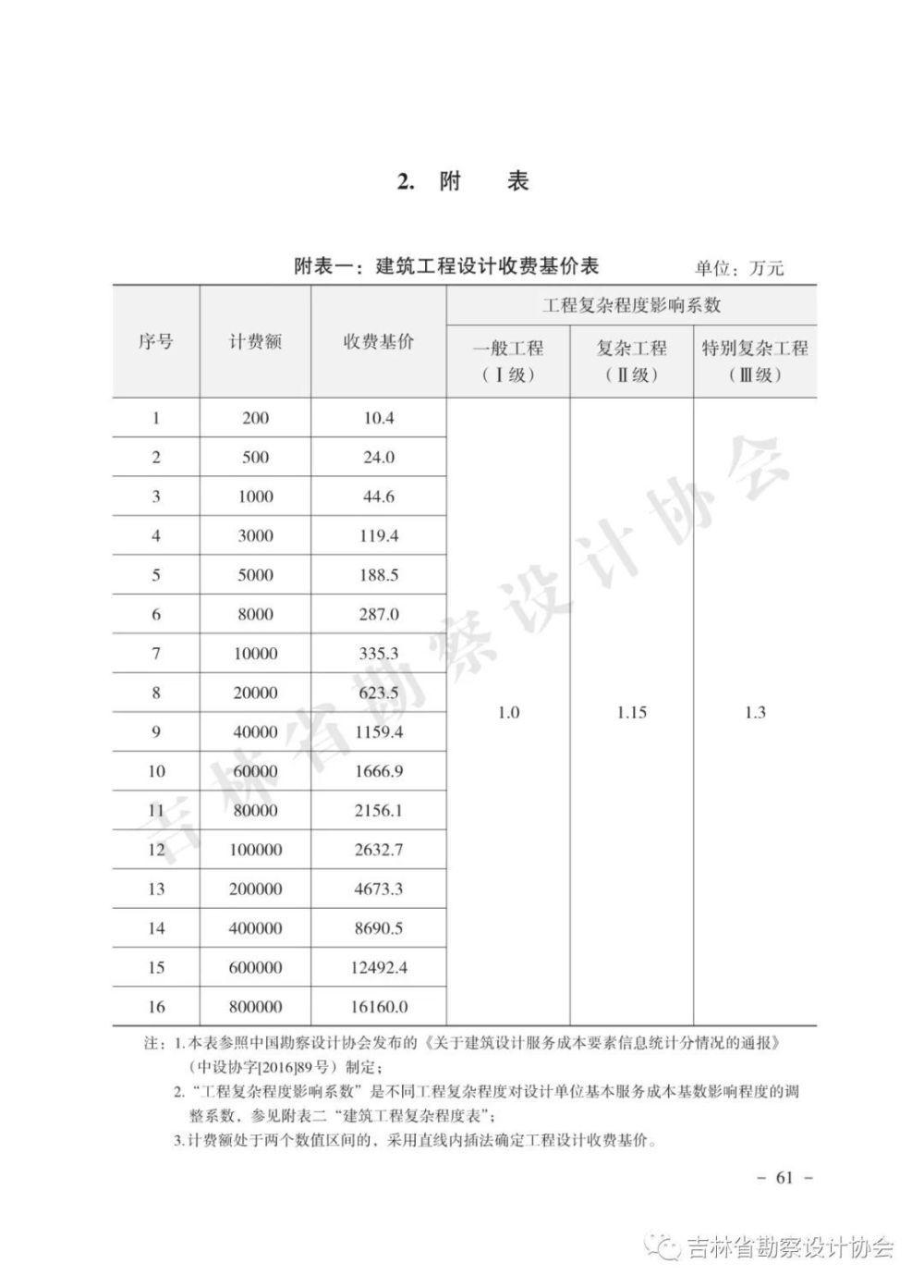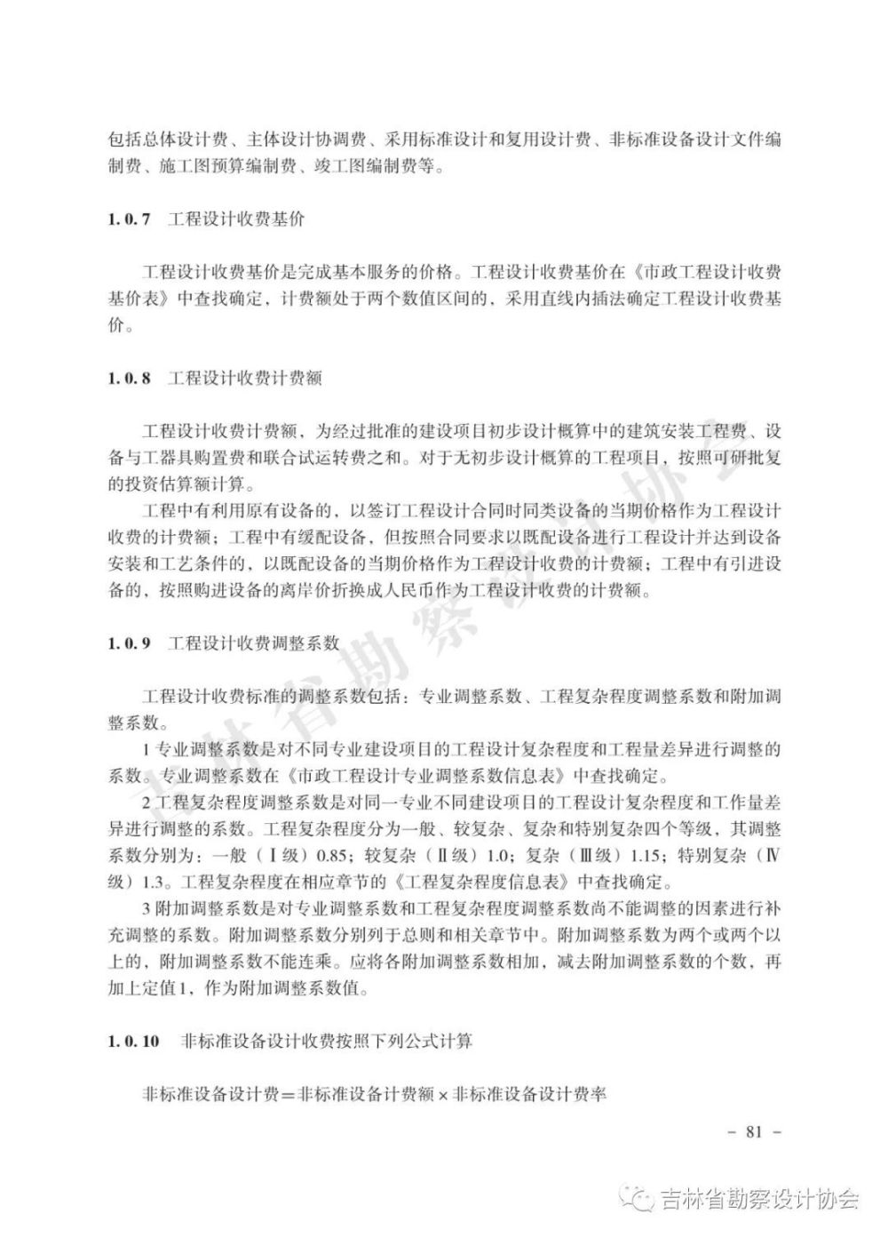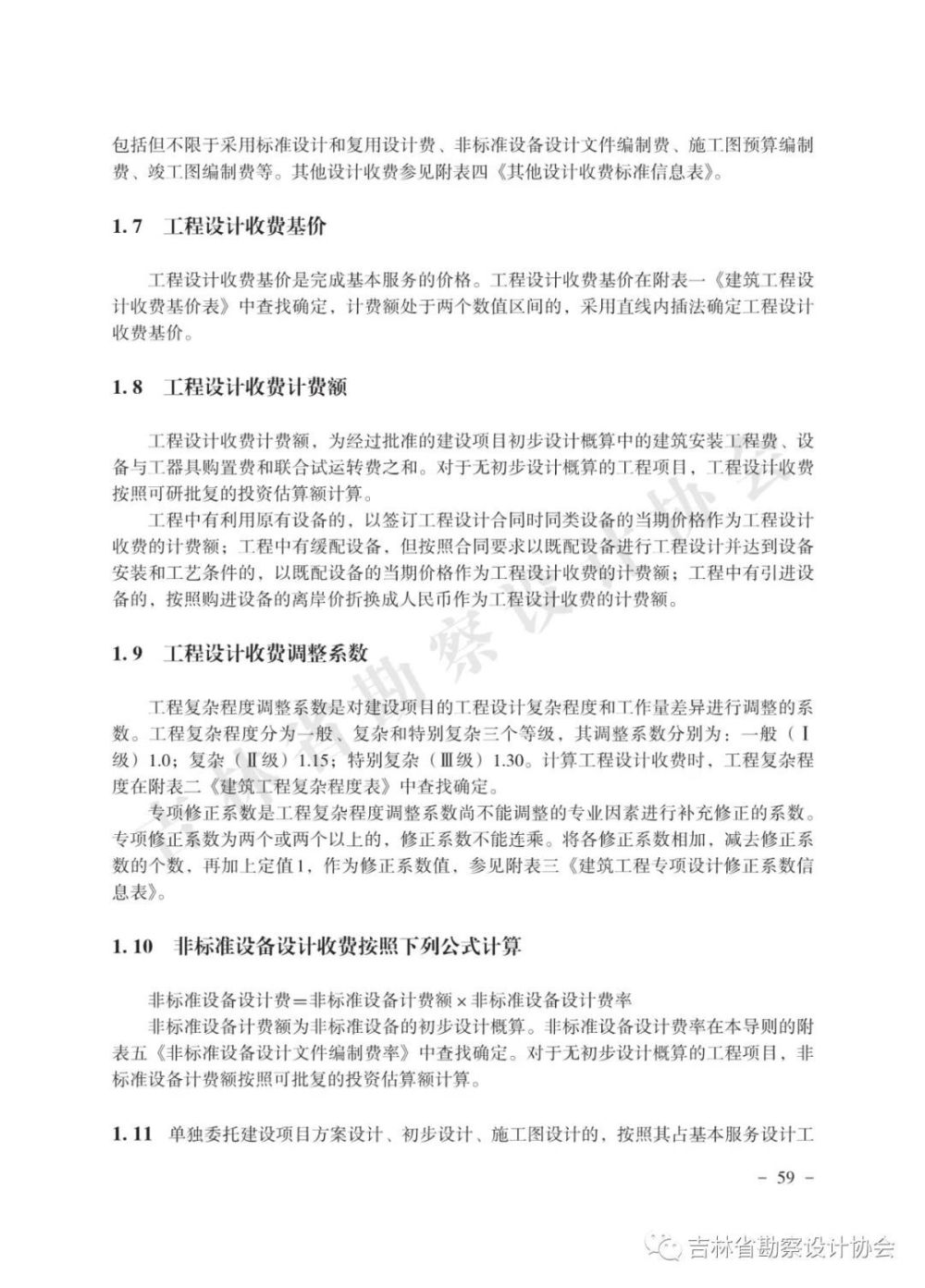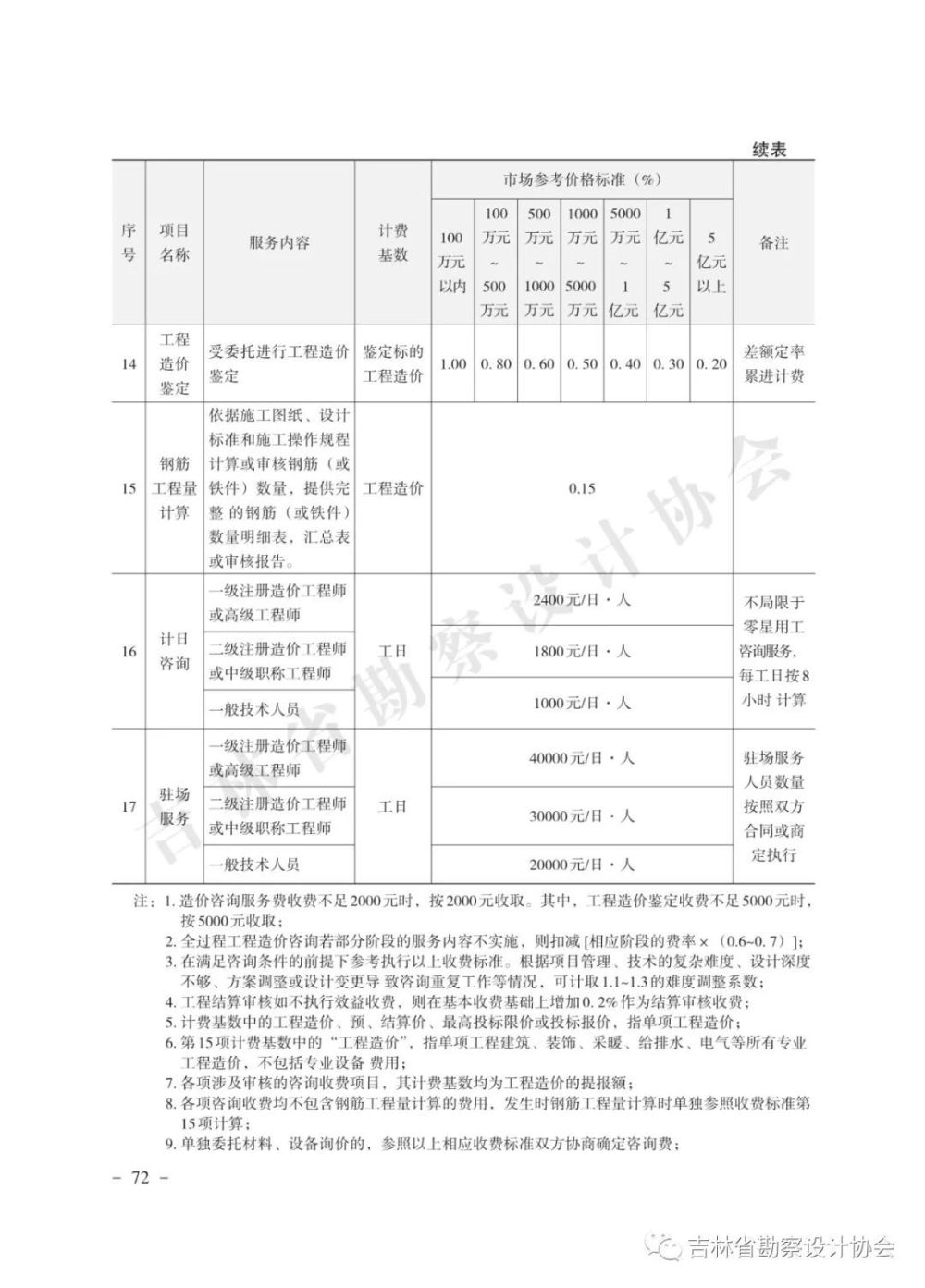 吉林省勘察設計協會通過對各地市勘察設計服務成本要素信息進行統計、分析及研究,在組織會員單位充分研討的基礎上,結合該省市級情況,對《吉林省建筑工程勘察設計收費指導價(試行)》予以修編,形成了《吉林省工程勘察設計收費導則》。