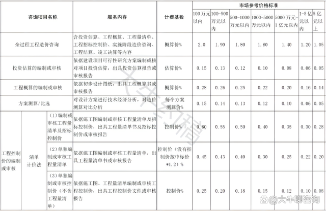 1、單獨“編制工程量清單”咨詢服務按“2.編制工程量清單及計價”同檔費率的60%計費;