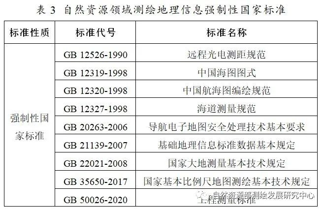 自然資源部組建后,測繪地理信息標準成為自然資源標準體系的重要組成部分。截至2021年底,自然資源領域測繪地理信息相關標準中僅有9項強制性國家標準。