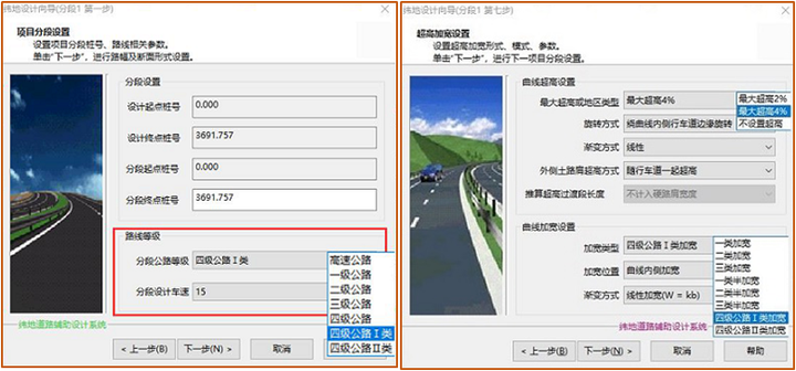 緯地軟件加寬設(shè)計功能4、集成了完整的公路設(shè)計規(guī)范指標(biāo)緯地軟件支持用戶自定義各等級技術(shù)指標(biāo),用戶可根據(jù)需要,對技術(shù)標(biāo)準(zhǔn)庫進(jìn)行編輯與擴(kuò)充。針對《小交通量農(nóng)村公路工程技術(shù)標(biāo)準(zhǔn)》,緯地軟件已于該標(biāo)準(zhǔn)發(fā)布第一時間,進(jìn)行了研習(xí),并集成了相關(guān)技術(shù)指標(biāo),用戶可根據(jù)項目等級,直接選擇小交通量道路等級,并由軟件,自動完成路幅寬度、斷面形式提取,超高加寬等自動計算。