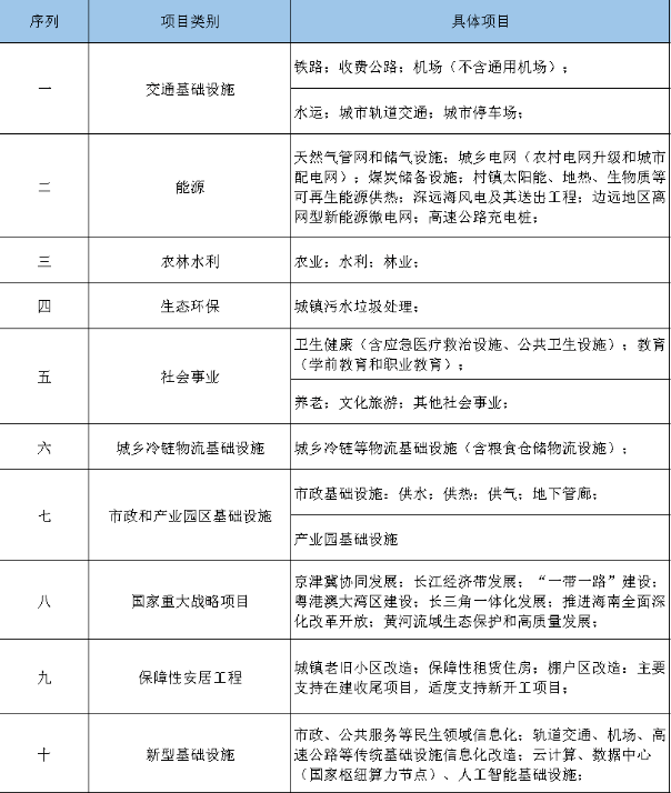 再次熟悉專項(xiàng)債所支持的領(lǐng)域: