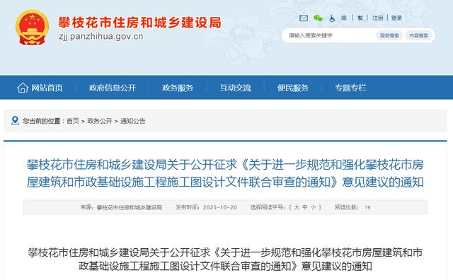 為貫徹落實(shí)國務(wù)院辦公廳《關(guān)于全面開展工程建設(shè)項(xiàng)目審批制度改革的實(shí)施意見》(國辦發(fā)〔2019〕11號(hào))、《住房城鄉(xiāng)建設(shè)部關(guān)于推進(jìn)工程建設(shè)項(xiàng)目審批標(biāo)準(zhǔn)化規(guī)范化便利化的通知》(建辦〔2023〕48號(hào))等有關(guān)要求,進(jìn)一步提升審批服務(wù)效能,更好滿足企業(yè)和群眾辦事需求,我局牽頭起草了《關(guān)于進(jìn)一步規(guī)范和強(qiáng)化攀枝花市房屋建筑和市政基礎(chǔ)設(shè)施工程施工圖設(shè)計(jì)文件聯(lián)合審查的通知(征求意見稿)》,現(xiàn)向社會(huì)公開征求意見,請(qǐng)于2023年11月20日18:00前以書面或郵件形式反饋我局。