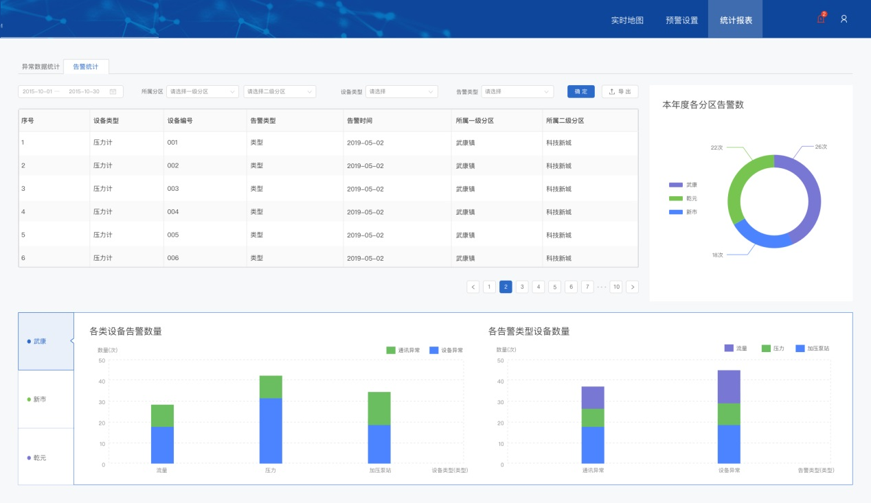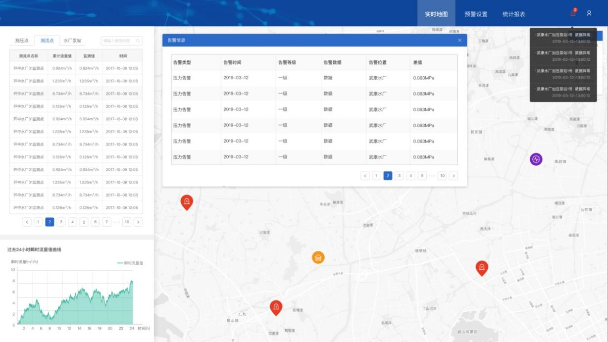 根據(jù)中控采集數(shù)據(jù)如果測壓點(diǎn)低于臨界值,自動發(fā)出報警。