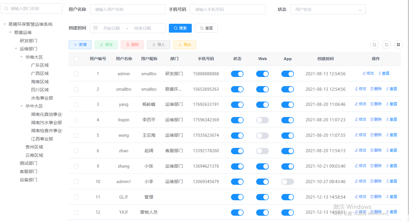 管理員可以通過用戶模塊管理各個部門的用戶,添加用戶角色,并設(shè)置權(quán)限和數(shù)據(jù)權(quán)限。還可進(jìn)行部門管理。