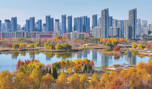 安徽省亳州市不斷推進生態(tài)城市建設,圖為高新區(qū)鳳尾公園色彩斑斕,景色如畫。劉勤利 攝